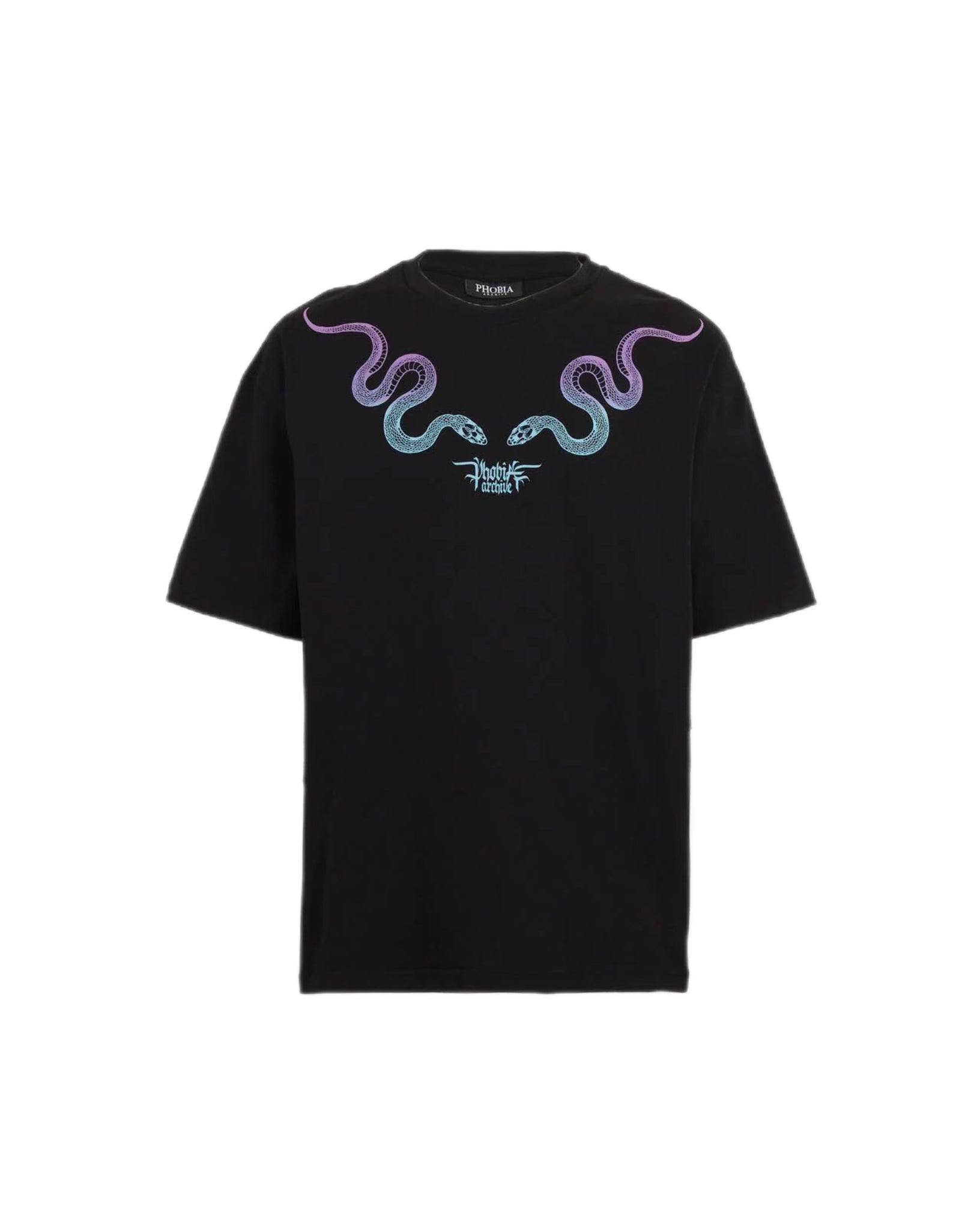Phobia BLACK T-SHIRT WITH PINK AND BLUE SNAKE PRINT